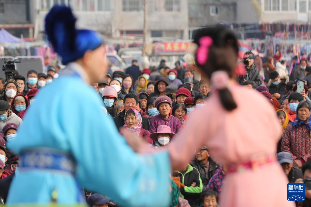 2月24日,在臨沂市沂南縣依汶鎮東依汶村,村民在觀看戲曲表演。