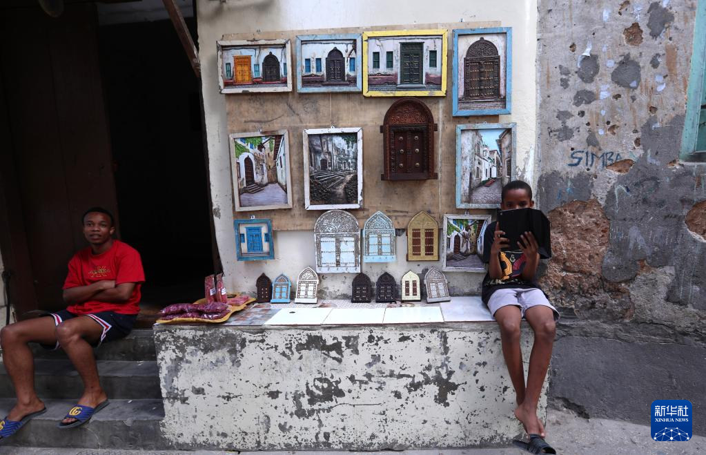 2月23日,兩名男孩在桑給巴爾石頭城等待顧客。