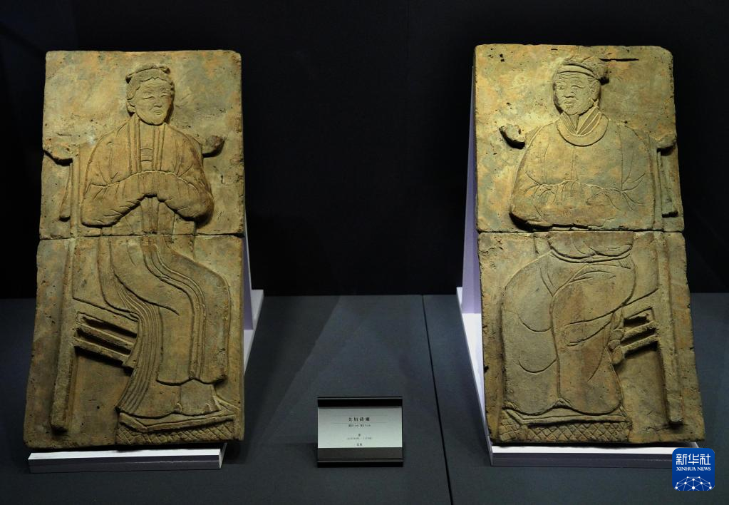 這是在鄭州大象陶瓷博物館舉行的“宋人生活與二十四孝磚雕展”上展出的夫婦磚雕(3月1日攝)。