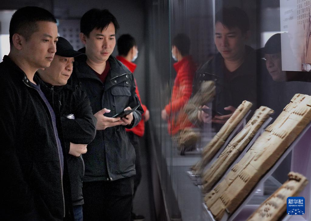 觀眾在鄭州大象陶瓷博物館觀看展品(3月1日攝)。