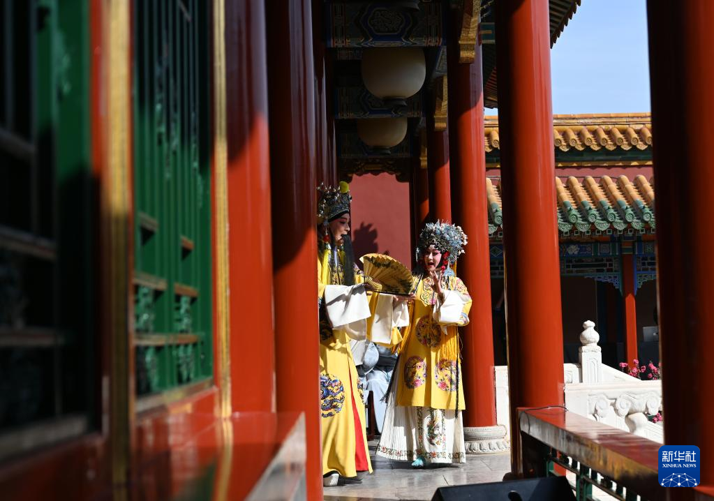 3月13日,“梅花獎”得主、表演藝術家黎安(左二)和國家一級演員余彬表演《長生殿·小宴》選段。