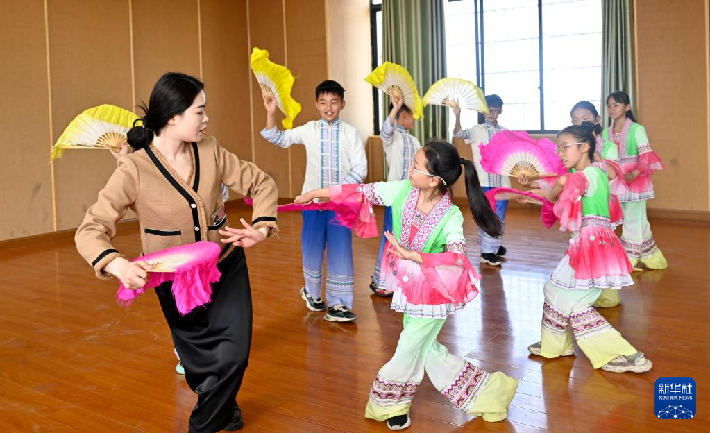 近年來,廣西柳州市柳城縣教育部門把彩調的一些曲目編排成簡單易學的校園廣播操,并逐步在該縣的各小學推廣,豐富校園文化生活的同時,也讓學生感受到非遺文化的魅力。彩調劇作為廣西地方傳統戲劇,被列入第一批國家級非物質文化遺產名錄。