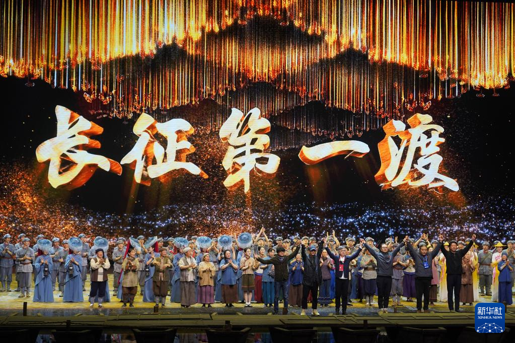 3月23日晚,《長征第一渡》在江西省于都縣長征大劇院首演。本劇以長征中的重大事件為節點,運用兼具故事性和藝術欣賞性的現代影像和舞臺技術,講述了波瀾壯闊的長征故事,讓觀眾在沉浸式體驗中感受長征時期的崢嶸歲月。