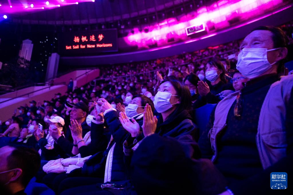 3月24日,觀眾在第十四屆武漢國際雜技藝術節開幕式上觀看《英雄之城》。