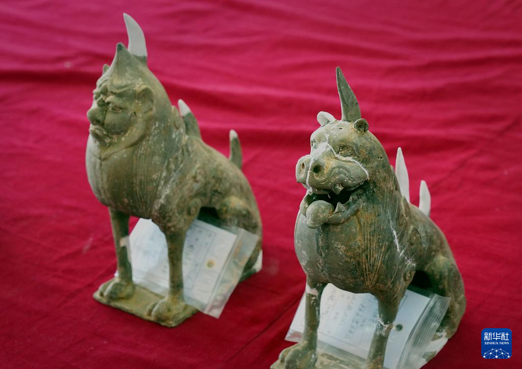 這是洛陽孟津朱倉北朝墓內出土的陶鎮墓獸(3月15日攝)。