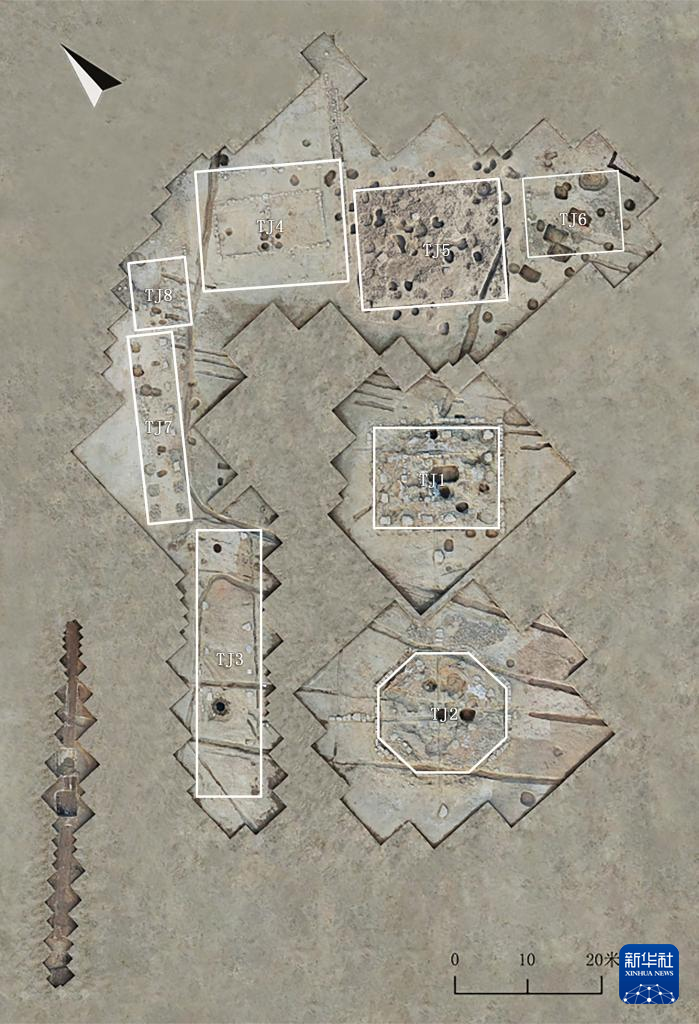 河南偃師二里頭都邑中心區西南路口的新發現航拍示意圖(資料照片)。