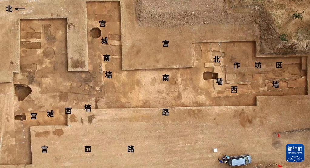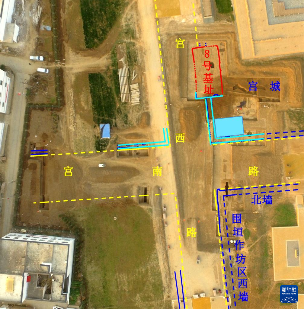 河南偃師二里頭都邑8號基址、宮城西南與作坊區西北部航拍(資料照片)。