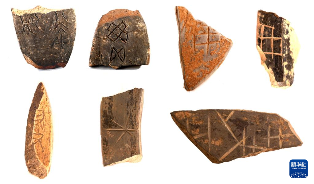 陜西旬邑西頭遺址出土的陶器刻劃符號與陶文(資料照片)。