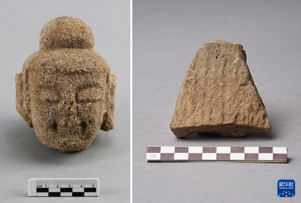吉林琿春古城村1號寺廟址出土的佛像殘片(拼版資料照片)。