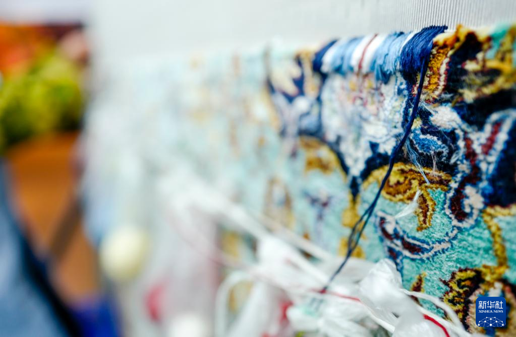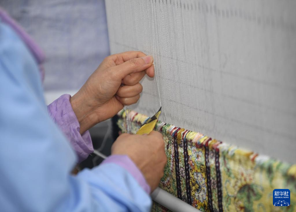 這是3月21日拍攝的正在編織中的閬中絲毯。