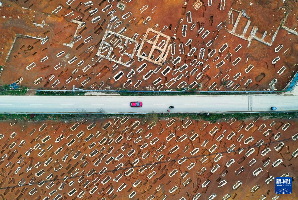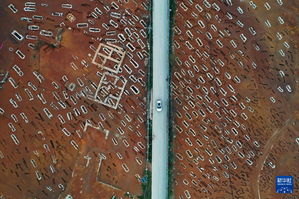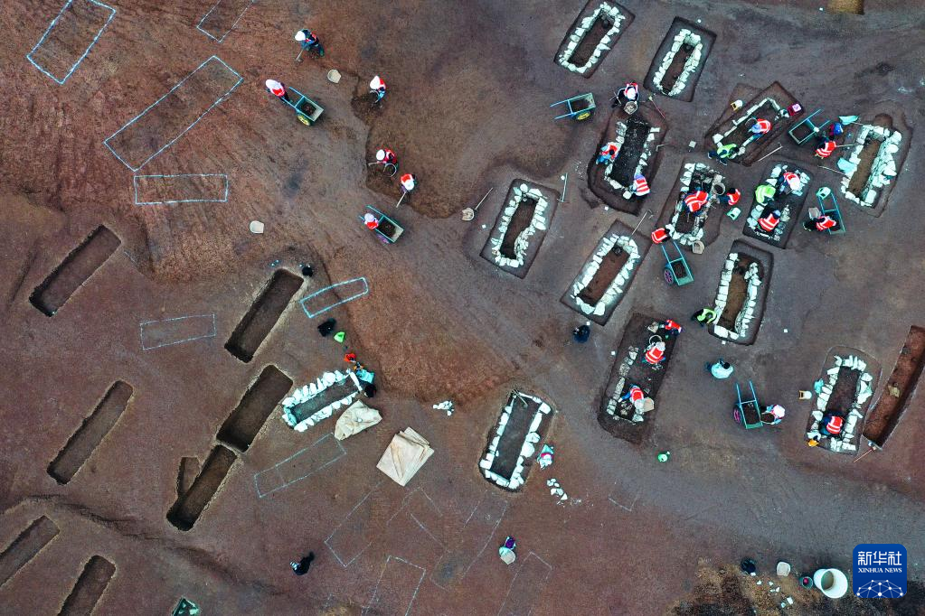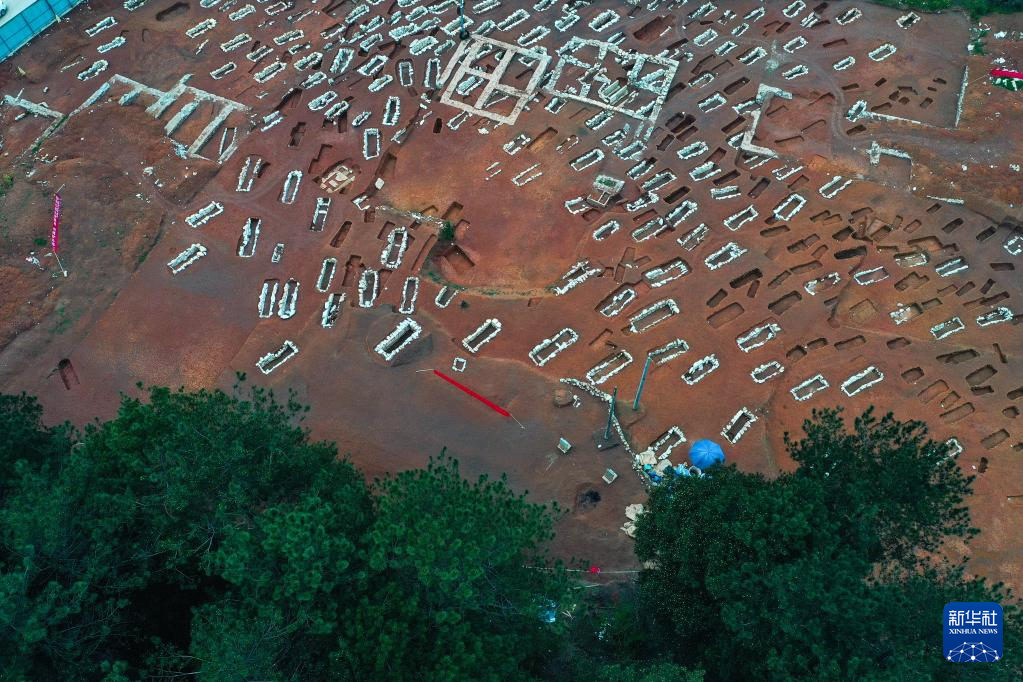 3月30日拍攝的貴州貴安新區大松山墓群挖掘現場(無人機照片)。