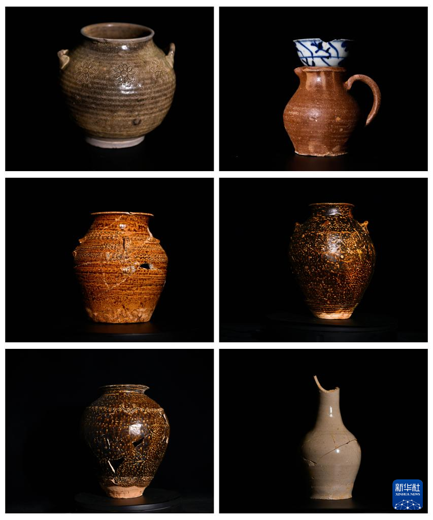 貴州貴安新區大松山墓群出土的陶瓷類文物(拼版照片,3月30日攝)。