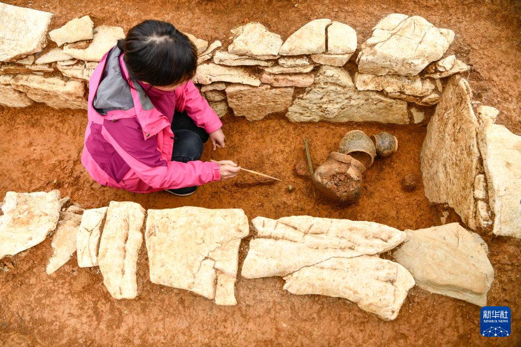 3月30日拍攝的貴州貴安新區大松山墓群挖掘現場。