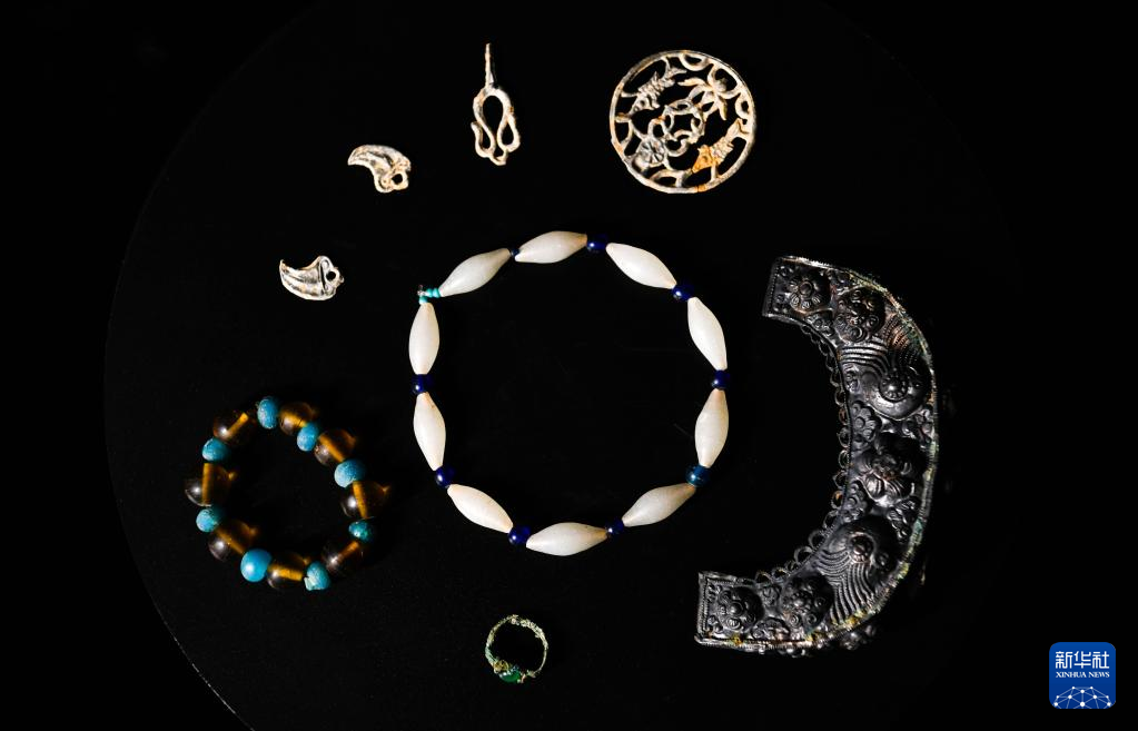 貴州貴安新區大松山墓群出土的精美裝飾品(3月30日攝)。