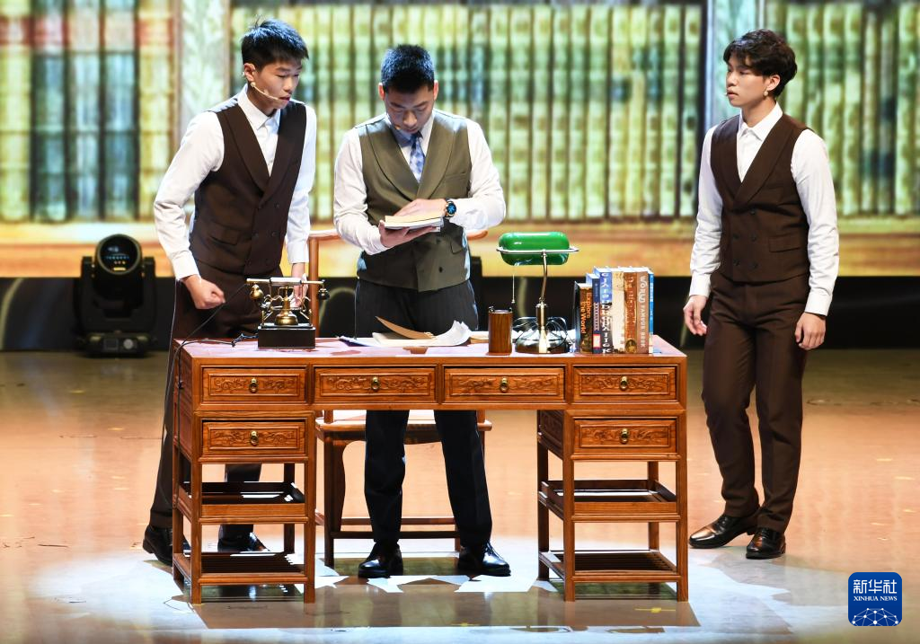 當日,由108名北京交通大學機電學院在讀學生表演的原創話劇《中國機車先驅》在校內天佑會堂公演。據了解,該話劇情景再現了我國第一臺大馬力蒸汽機車設計者及監造者應尚才教授的人生軌跡,反映其“愛路報國”的精神追求。