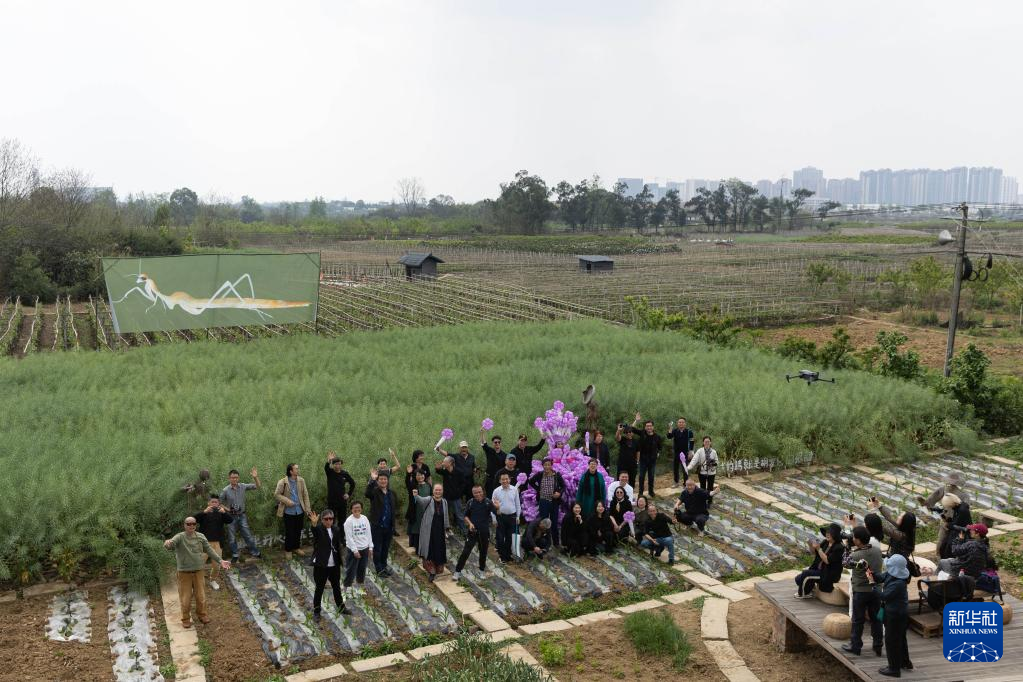4月1日,參加影像藝術展的嘉賓在田間合影。