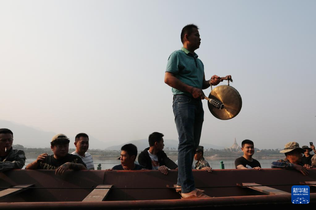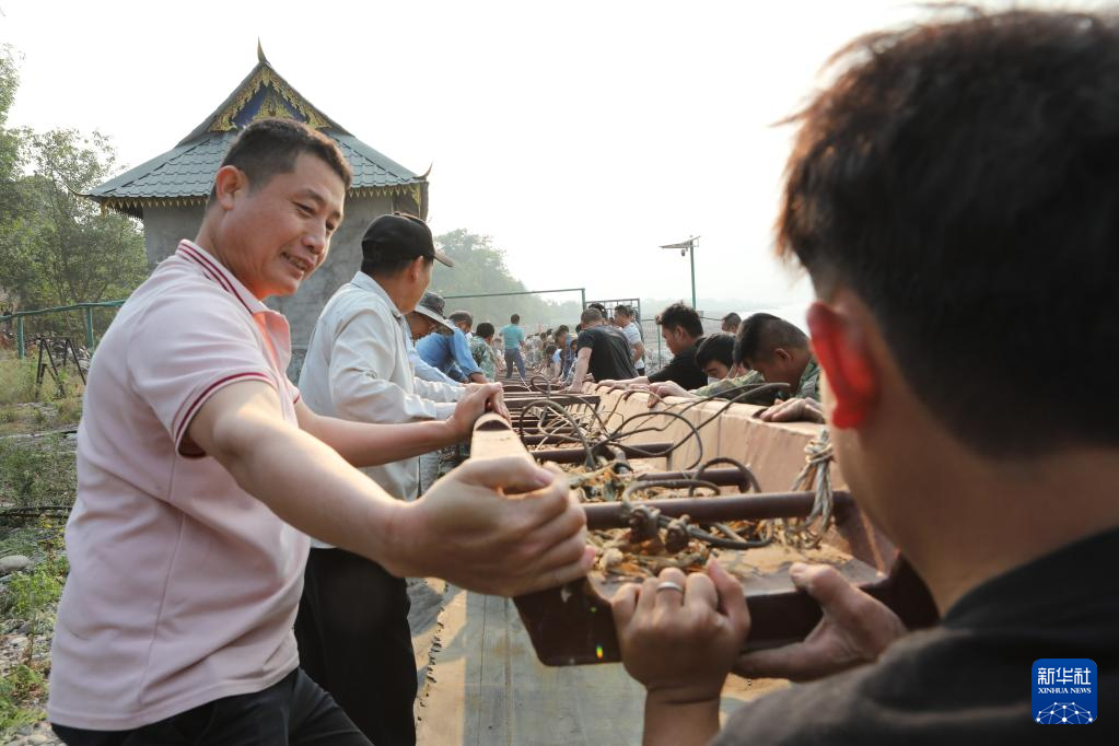 4月1日,云南省景洪市勐罕鎮曼聽村村民在瀾滄江邊進行龍舟下水儀式。