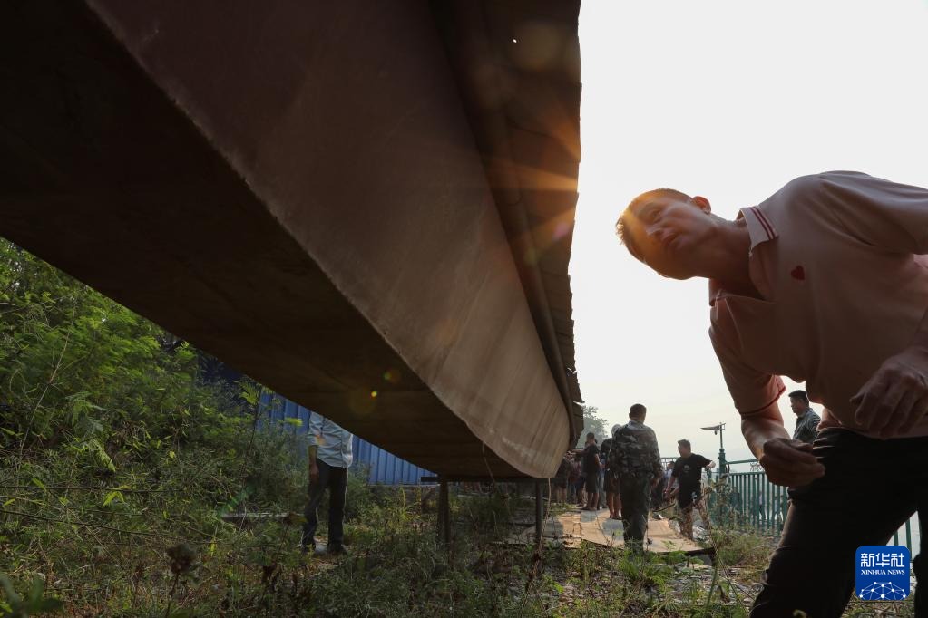 4月1日,景洪市勐罕鎮曼搭村村民在檢查龍舟。
