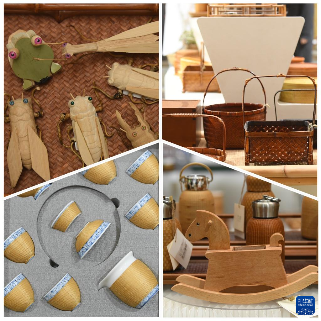 姜鵬團隊設計的部分竹產品(4月3日攝)。