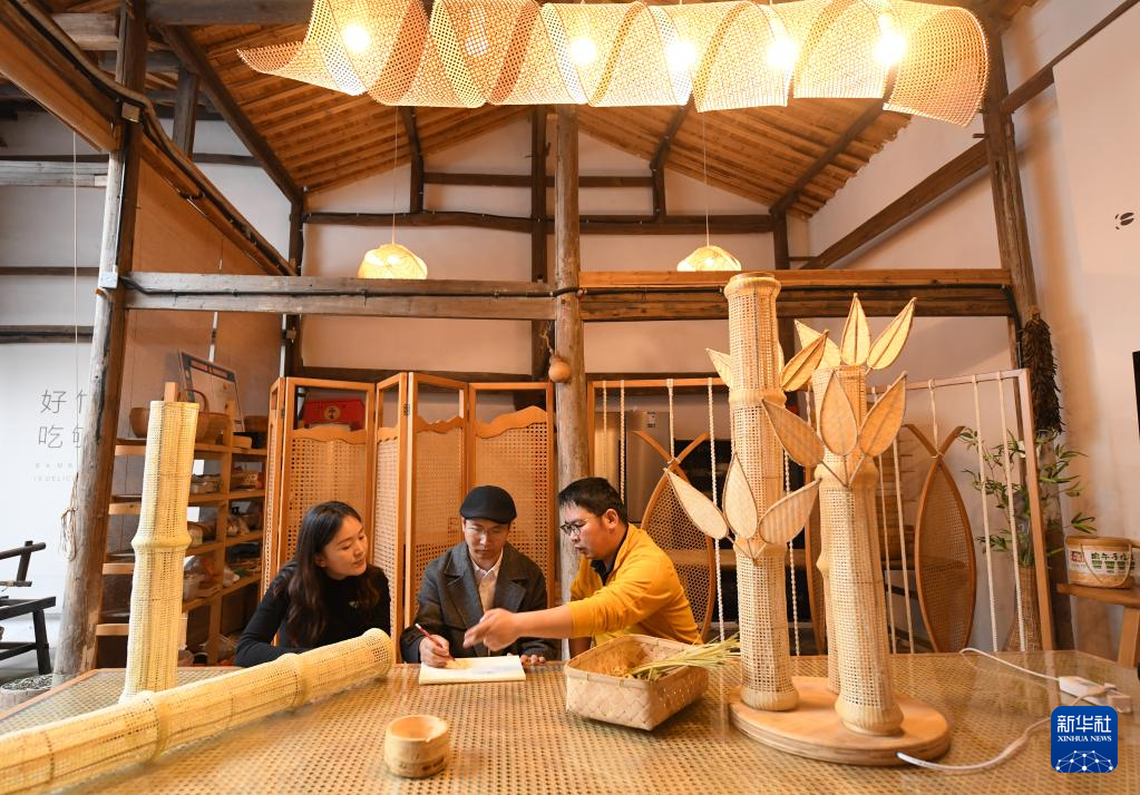 2018年,在杭州一個動畫設計公司工作的青年姜鵬和妻子鄒霞辭去大城市的工作,回到老家龍游,在古村溪口租下一棟老房子進行創業。夫妻倆發揮設計專長,為家鄉農產品代言。同時,兩人又結合當地竹資源豐富的特點,以“導師幫帶”模式,邀請專業院校老師和設計師共同開發竹產品,帶動周邊20余名工匠、170多戶村民參與產品制作。目前,他們的團隊共開發了2600款竹產品,農特產年銷售額1500萬元,參與村民戶均年增收1.8萬元左右。
