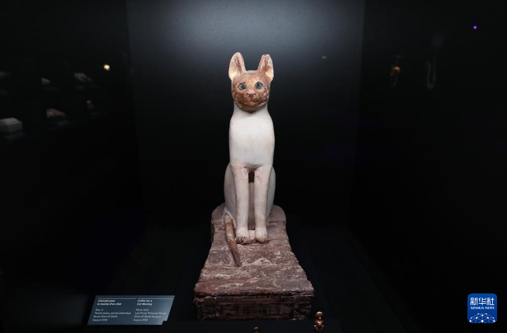 這是4月6日在法國巴黎拍攝的貓木乃伊石棺。