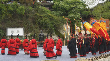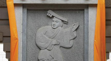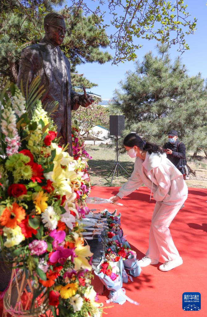 4月7日,參觀者在新落成的傅雷銅像前獻花。
