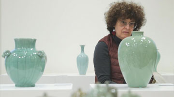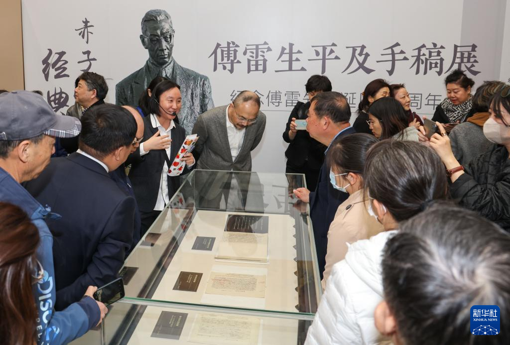 4月7日,參觀者在傅雷生平及手稿展上參觀。