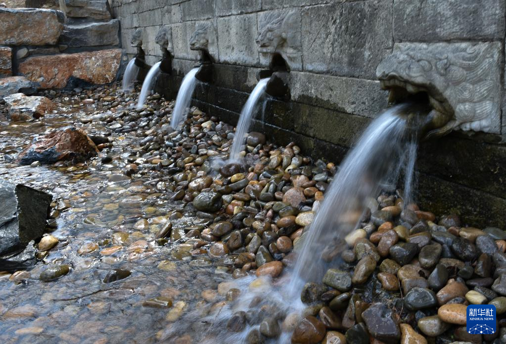 這是4月6日在位于北京市昌平區的大運河源頭遺址公園里拍攝的九龍池出水口。