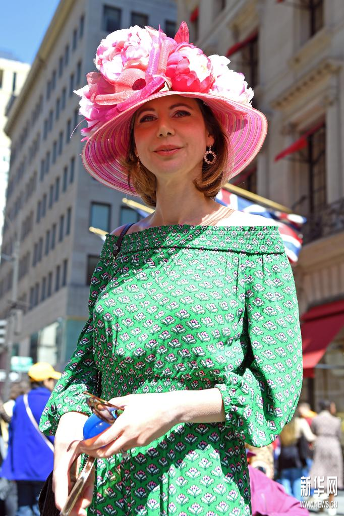 4月9日,在美國紐約,一名女子參加復活節花帽游行。