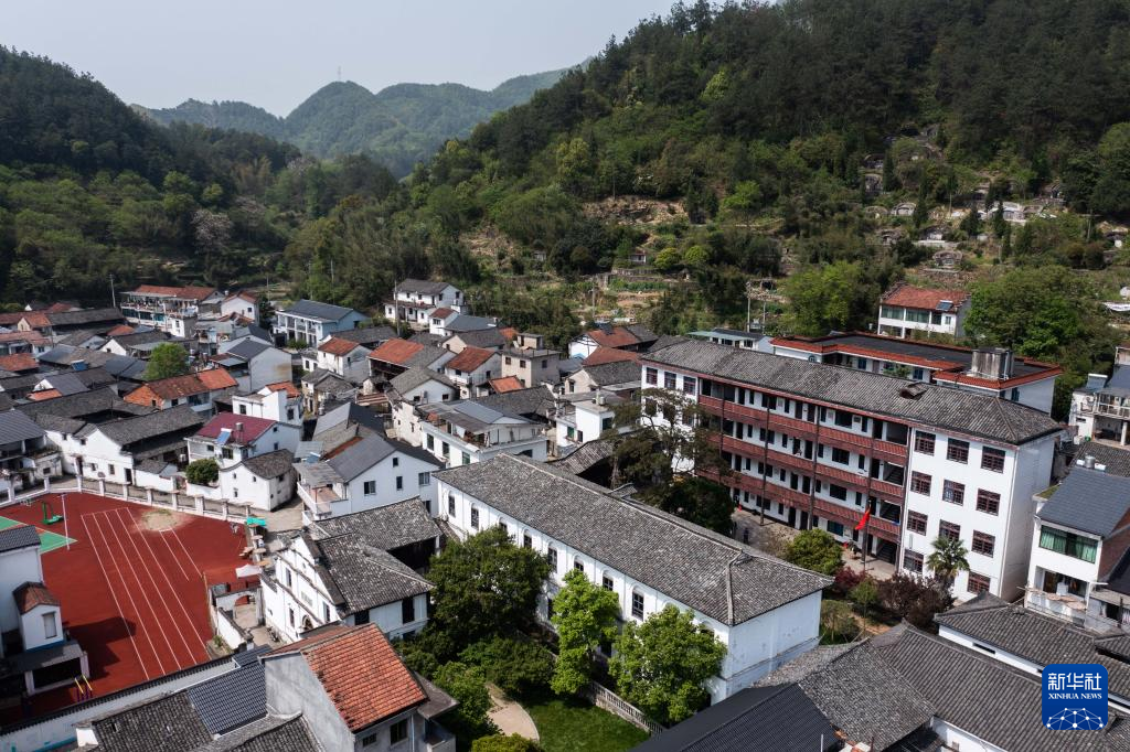 這是4月12日拍攝的諸暨市東白湖鎮有著百年歷史的斯民小學(無人機照片)。