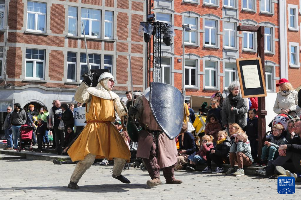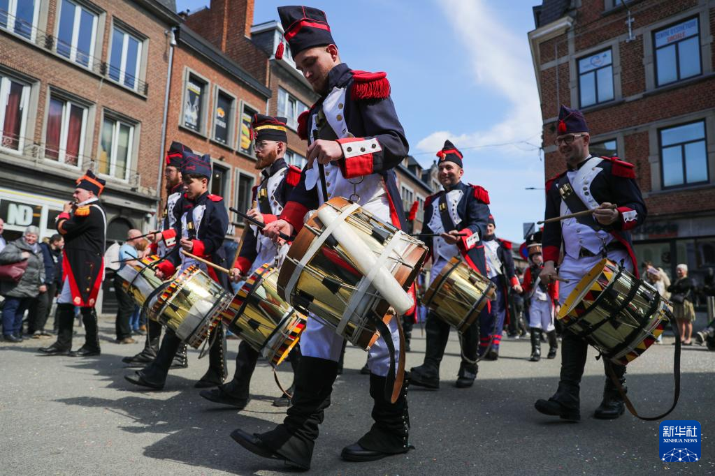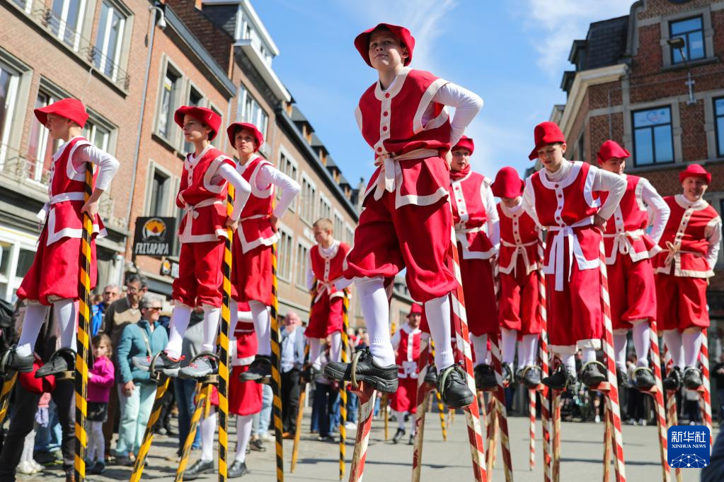 4月15日,演員在比利時那慕爾市傳統民俗日活動上表演。