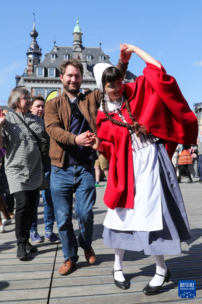 4月15日,人們在比利時那慕爾市傳統民俗日活動上跳舞。