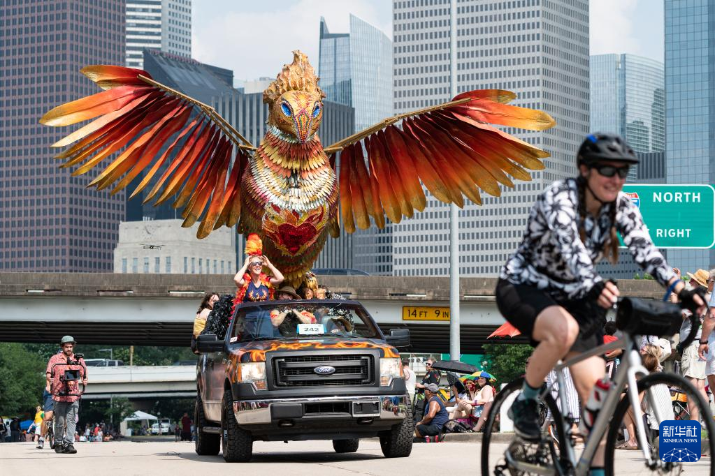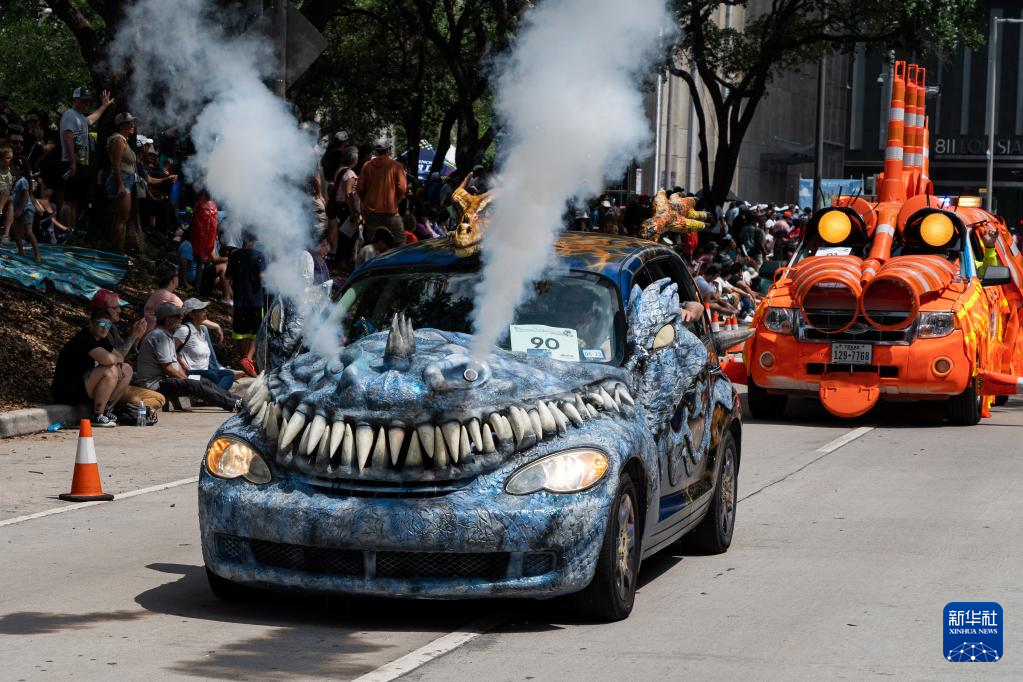 當日,美國休斯敦舉行第36屆藝術汽車巡游,來自美國、加拿大和墨西哥的250多件藝術汽車作品參加了這場年度盛事。參加巡游活動的藝術汽車作品還包括各種輪式交通工具,如自行車、獨輪車、割草機等。