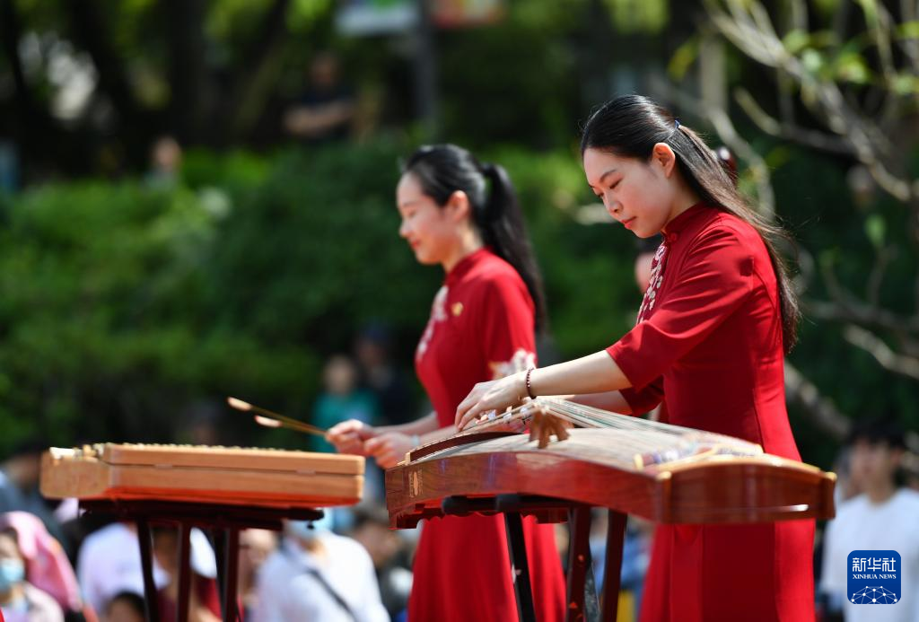 4月15日,演員在2023年福州西湖上巳節啟動儀式現場表演中國傳統樂器。