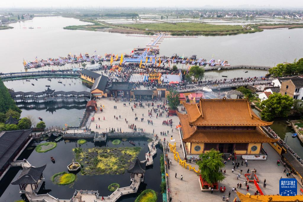 4月18日,空中俯瞰王江涇鎮蓮泗蕩的網船會現場(無人機照片)。