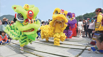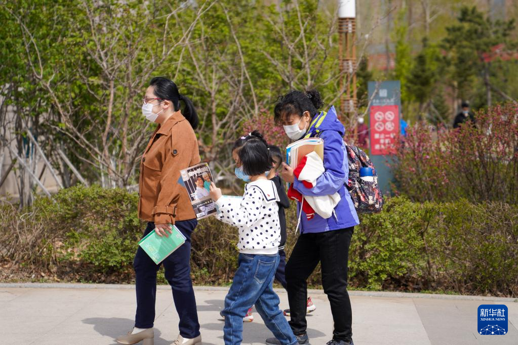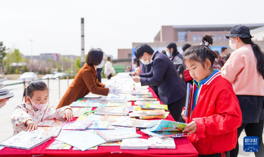 4月22日,一名小朋友在吉林省圖書館前的“換書大集”挑選圖書。