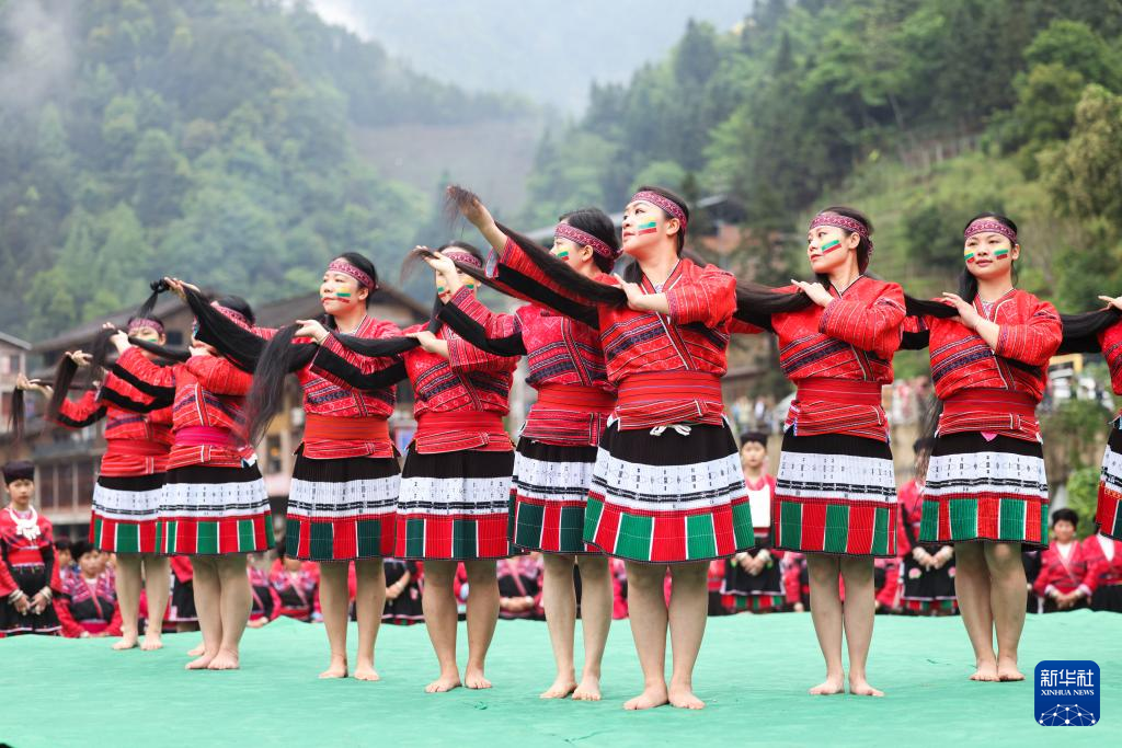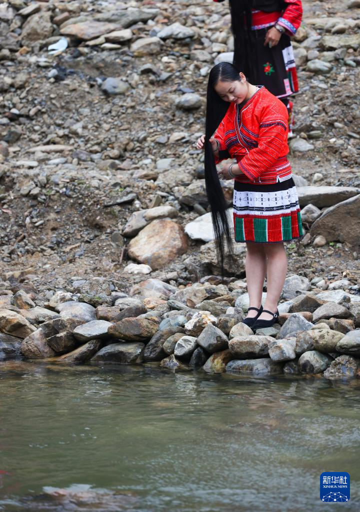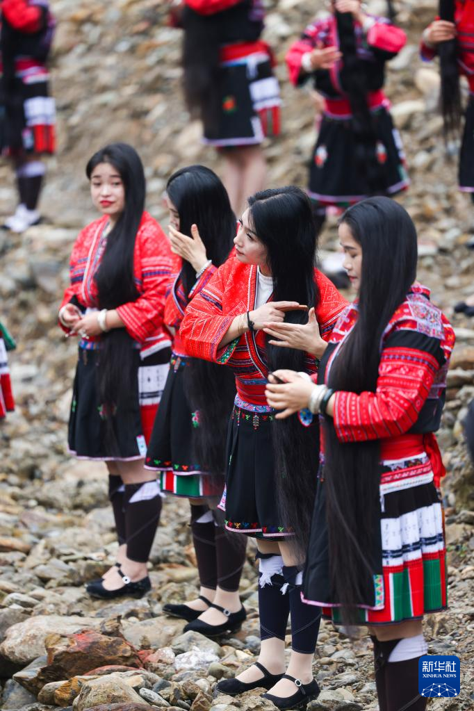 當日是農歷三月初三,廣西桂林市龍勝各族自治縣黃洛瑤寨舉行“三月三龍脊長發節”活動,吸引游客前來參觀游覽。黃洛瑤寨的紅瑤族婦女有世代相傳的蓄發習俗,平均頭發長度達1.7米,最長的有2.72米。