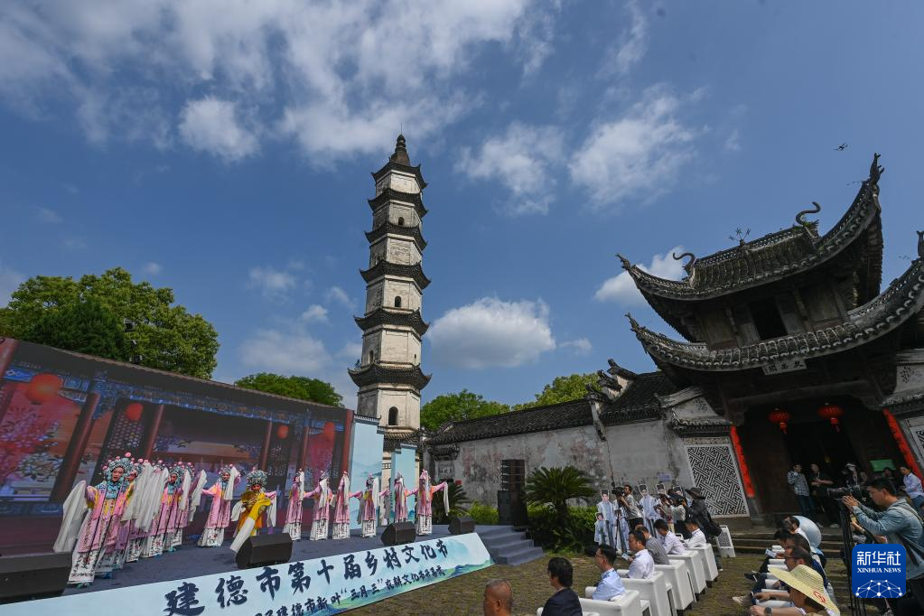 當日,以“非遺傳承、三地共富”為主題的浙江省建德市第十屆鄉村文化節暨2023建德市新葉“三月三”農耕文化節在建德市大慈巖鎮新葉古村開幕?,F場舉行了“龍游硬頭獅子”“嚴州蝦燈”“李村抬閣”及昆曲等10余項非遺文化展演。