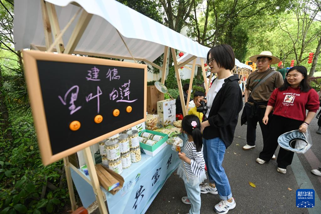 4月21日,鄉村文化節現場的共富集市匯聚了當地的農特產品。