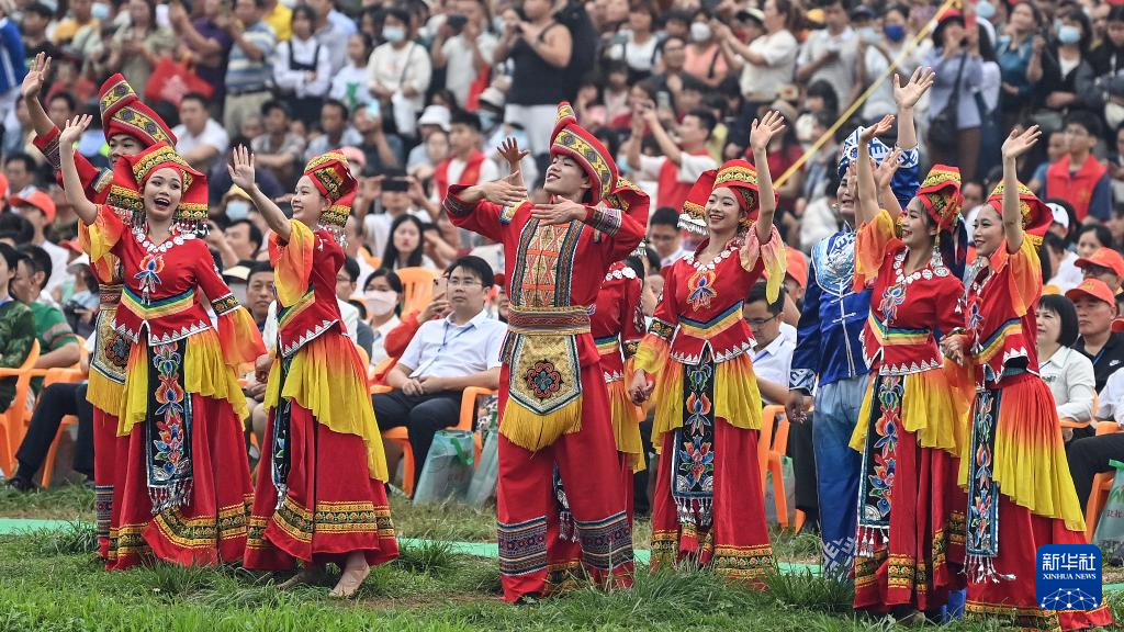當日,廣西欽州市在欽北區貴臺鎮洞利江畔舉行實景演出,歡慶“三月三”傳統佳節。