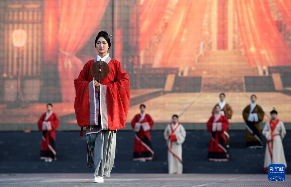 4月25日,華服走秀在西安大唐不夜城步行街舉行。