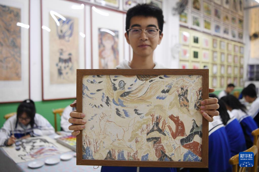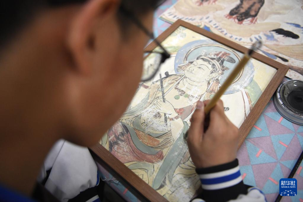 近年來,甘肅省敦煌市敦煌中學將敦煌壁畫藝術引入校園,整合專業師資力量,通過美術課堂、社團活動和主題實踐的方式,加強學生對敦煌壁畫藝術的了解,讓有興趣的學生在校園里開展壁畫臨摹和藝術創作,豐富校園文化生活,讓學生感受敦煌文化的魅力。