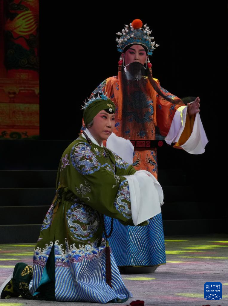 4月26日,保定王貫英老調藝術研究院的演員在開幕式演出現場表演老調《潘楊訟》。