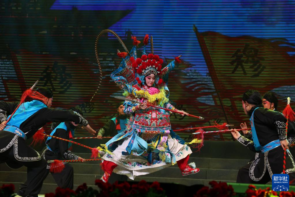 4月26日,演員在開幕式演出現場表演秦腔、晉劇、滇劇、河北梆子等多劇種版《大登殿》。