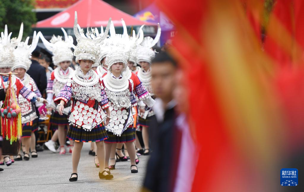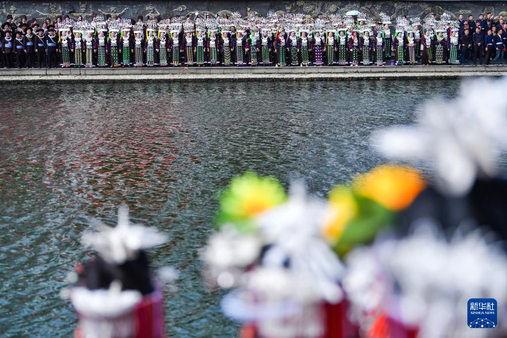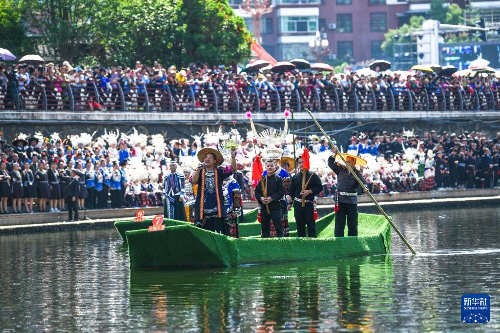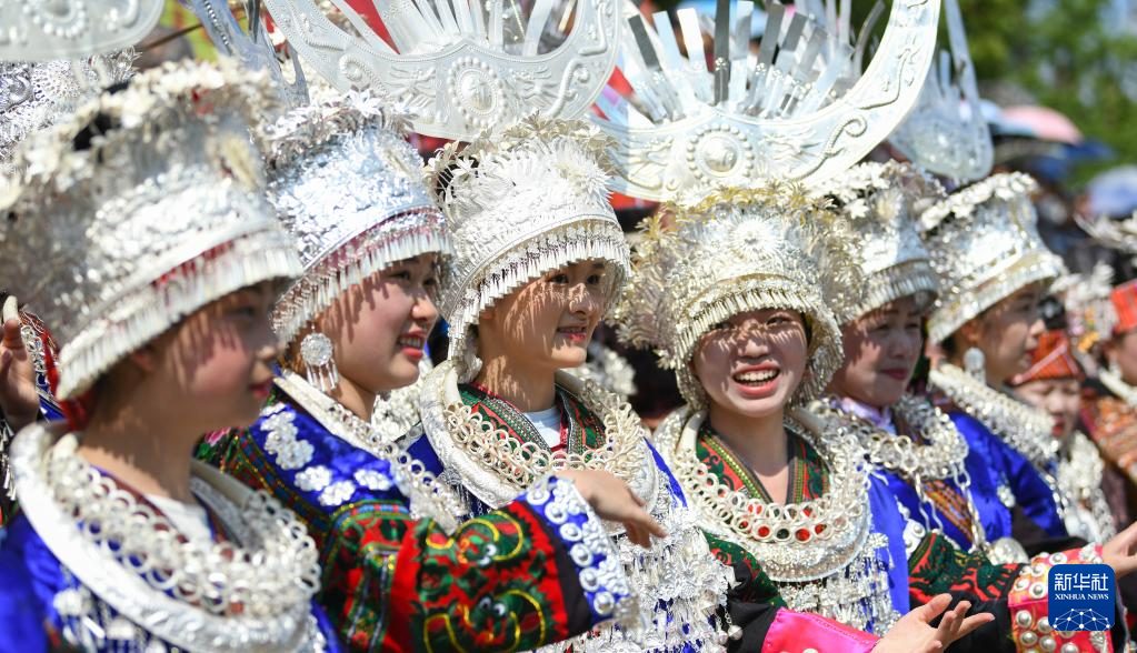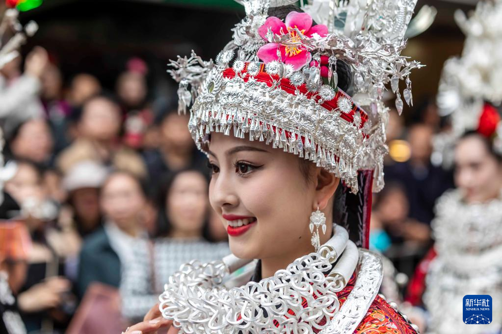 5月2日,人們在貴州省臺江縣參加苗族姊妹節盛裝巡游。