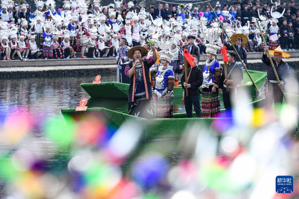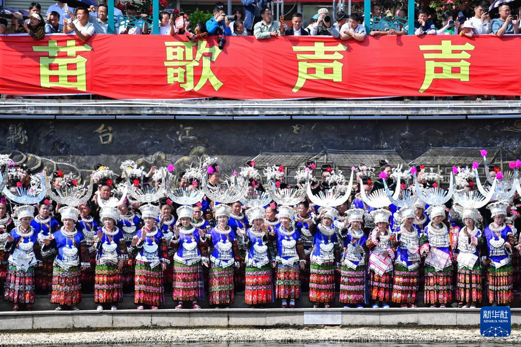 5月3日,在貴州省臺江縣,人們參加苗族姊妹節對唱活動。