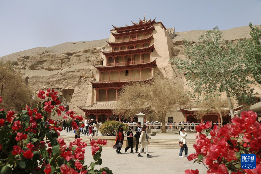 4月25日拍攝的莫高窟窟區(無人機照片)。