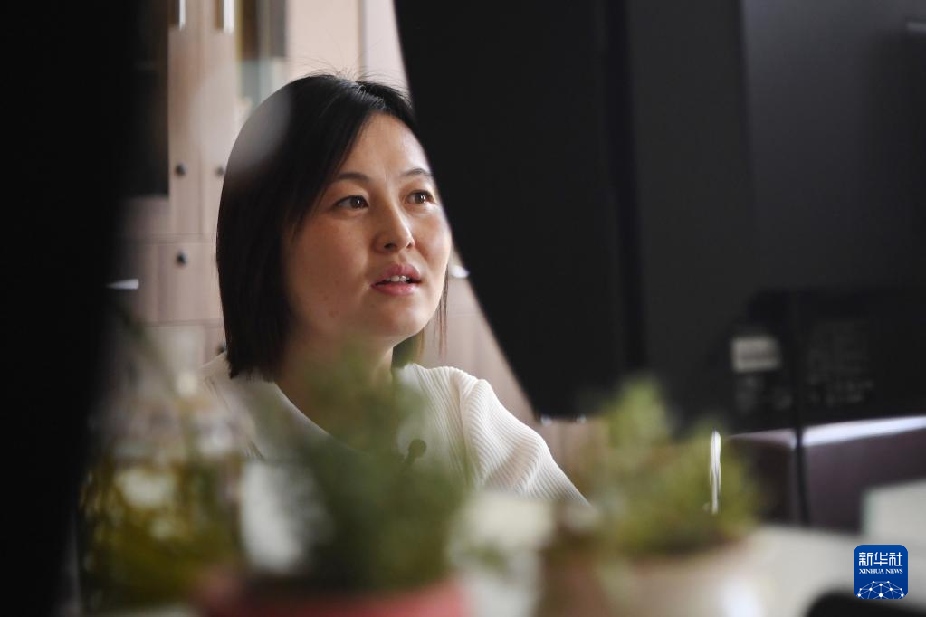 敦煌研究院文物數字化保護團隊的韓雪在查閱“數字敦煌”資源庫(4月25日攝)。