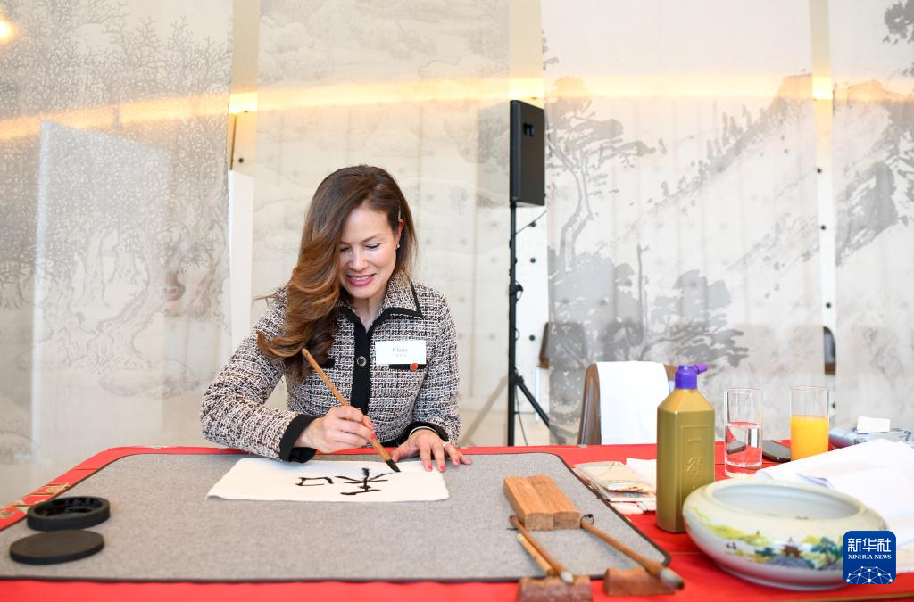 來自新加坡、擁有華人血統的敏琳坡士多十分喜愛中國文化,現場熱鬧的氛圍讓她不禁對書寫漢字躍躍欲試。她說,“和”字代表和平,意味著“團結、和睦以及人、自然和環境的和諧相處”,她特別喜歡這個字。