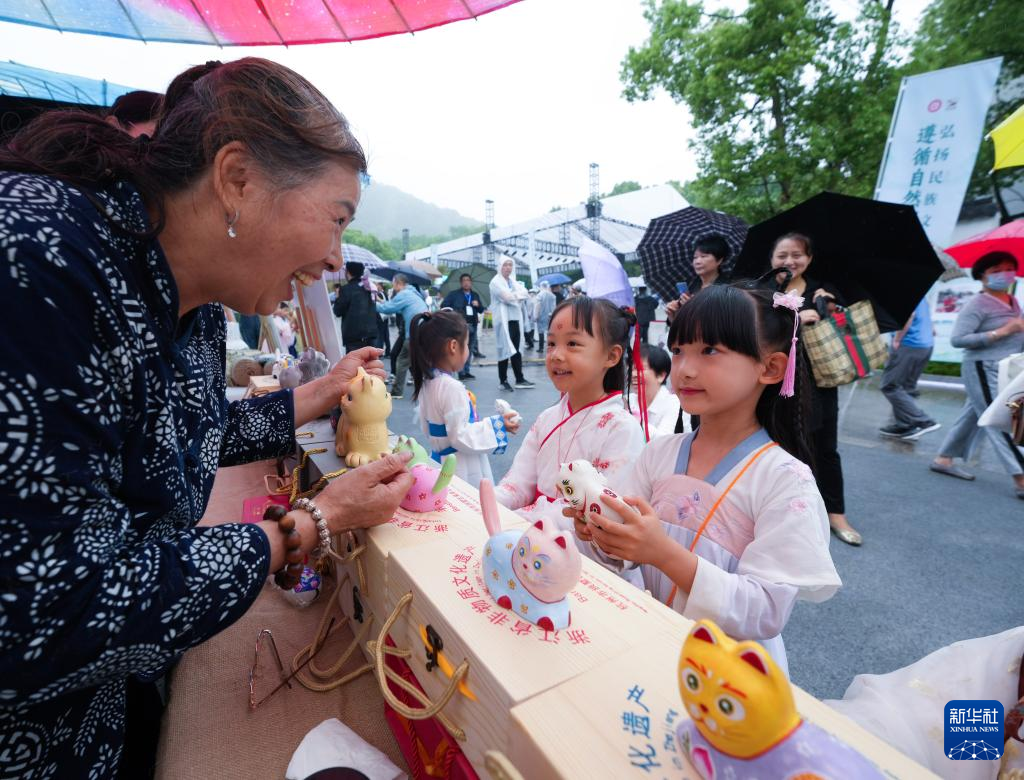 5月6日,居民在非遺集市展示手工藝品“半山泥貓”。